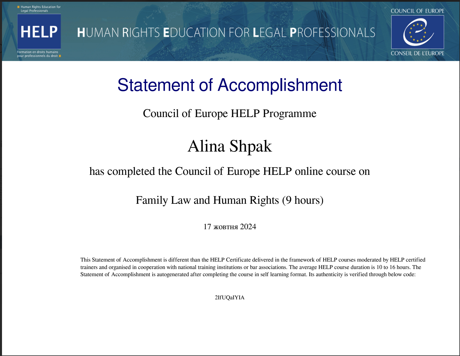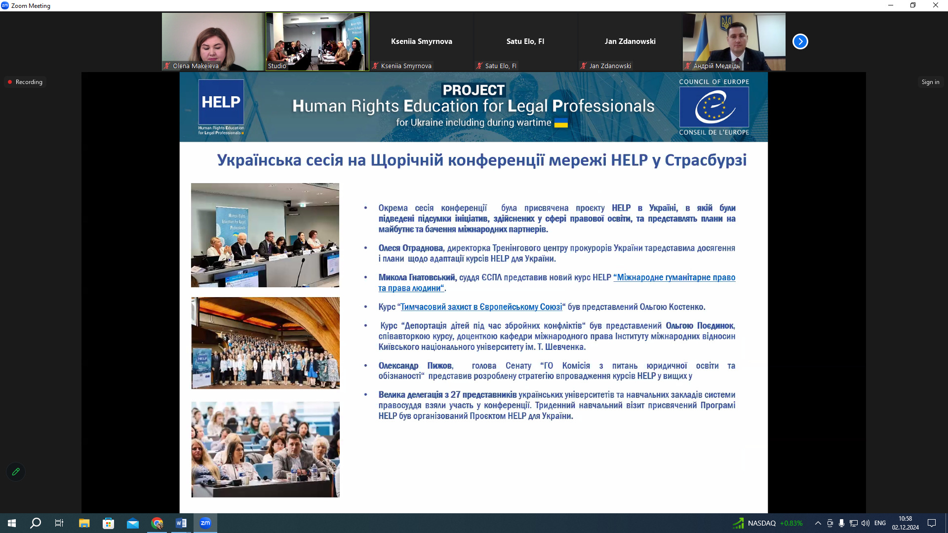 Представниця Факультету права та міжнародних відносин взяла участь у засіданні керівного комітету Проєкту Ради Європи «HELP»