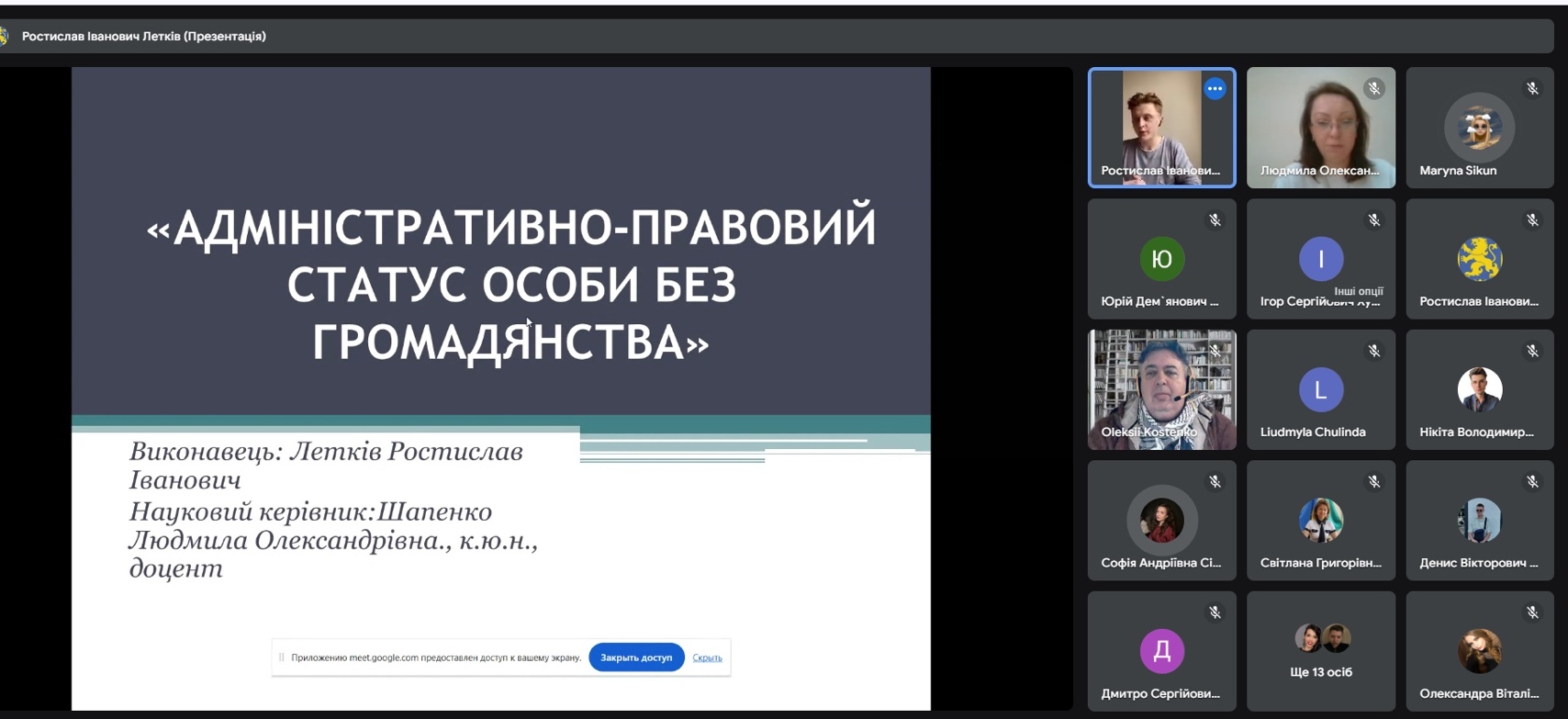 Засідання Наукового товариства студентів та аспірантів Юридичного факультету НАУ