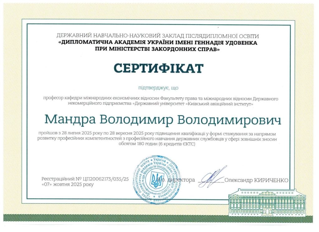 Електронна пошта: volodymyr.mandra@npp.kai.edu.ua