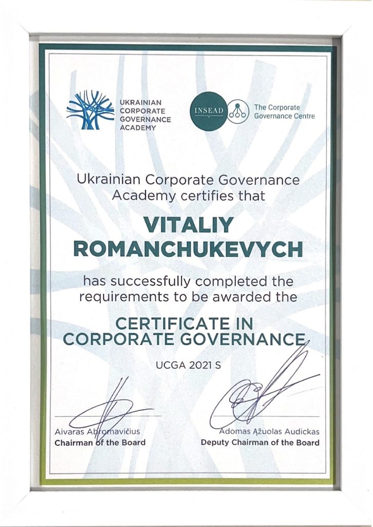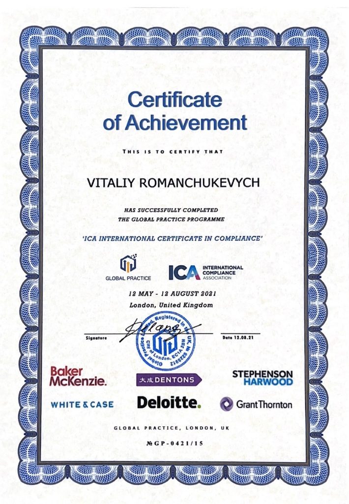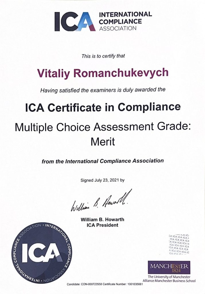 2021 – Член міжнародної асоціації комплаєнсу (ІСА);