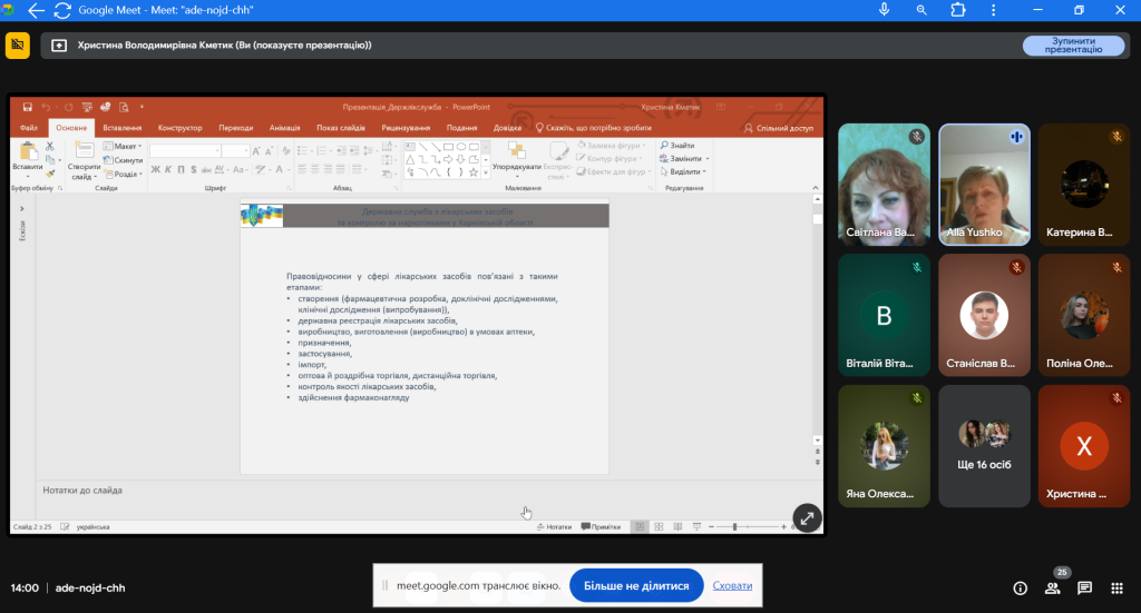 У жовтні 2025 року для студентів Факультету права та міжнародних відносин організовано гостьову онлайн-лекцію, присвячену основним етапам контролю обігу лікарських засобів в Україні.
