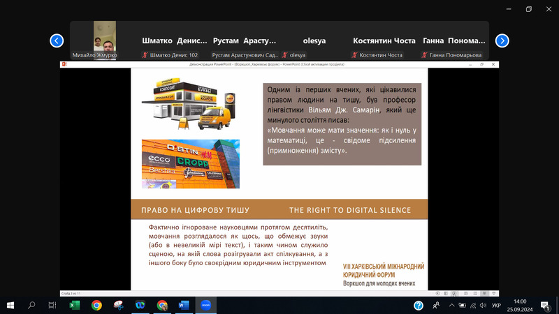 25 вересня 2024 року, у ході вивчення дисципліни «Методологія прикладних досліджень у сфері права», завідувачкою кафедри теорії та історії держави і права Юридичного факультету Оленою Макеєвою організовано участь магістрів Юридичного факультету у воркшопі на тему «Навігація по дослідженнях у цифрову еру: презентація колективної монографії та методологічна школа для молодих вчених».