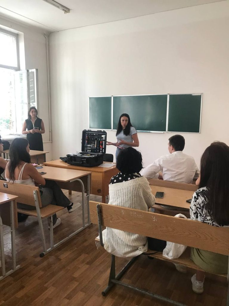 Експертка Інна Рець продемонструвала сучасне обладнання, яке використовується в лабораторіях та поділилася реальними прикладами зі своєї професійної діяльності, що зробило зустріч ще більш захоплюючою і корисною для здобувачів.