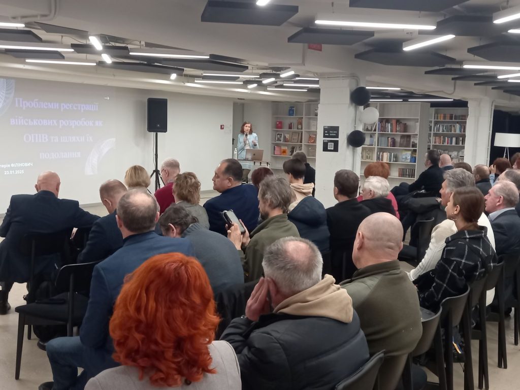 Виступи спікерів були присвячені проблемам управління правами та стратегії охорони і захисту інтелектуальної власності в оборонно-промисловому комплексі, а також фронтовим аспектам захисту інтелектуальної власності. Зокрема, Олексій Костенко та Валерія Філінович представили сучасні тенденції цифровізації сервісів реєстрації прав власності та особливості реєстрації військових розробок як об’єктів права інтелектуальної власності.