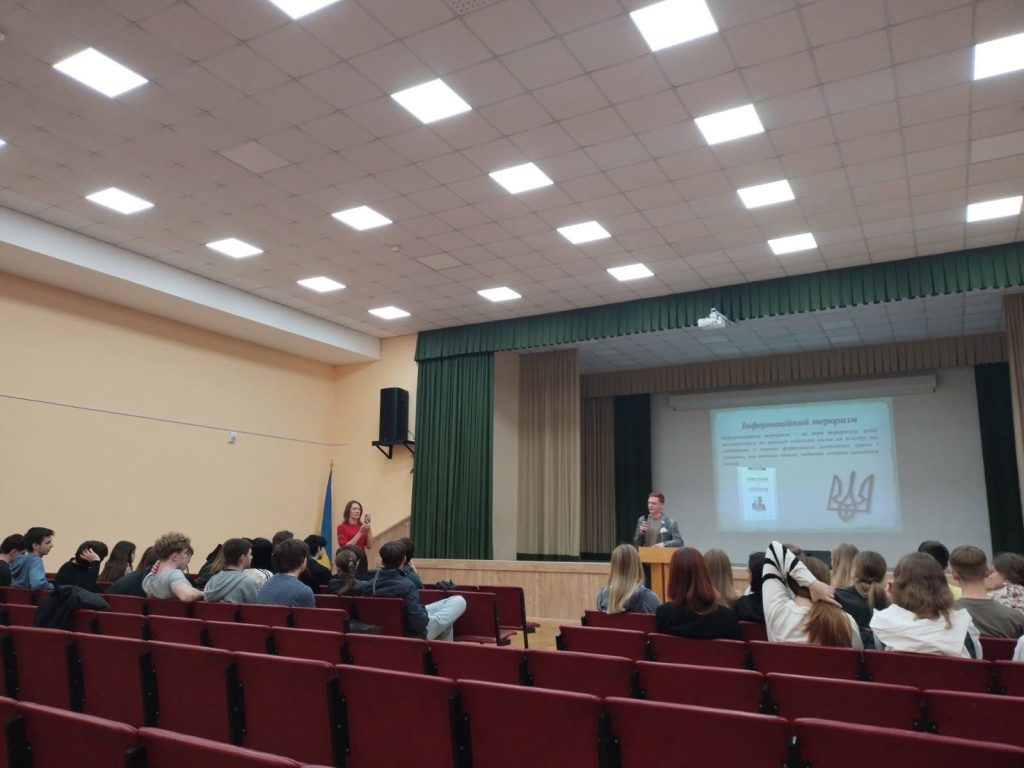 17 квітня 2025 року завідувач кафедри конституційного і адміністративного права Людмила Шапенко та в.о. директора Юридичної консультації «Юридична клініка», здобувач вищої освіти першого (бакалаврського) рівня Ростислав Летків спільно з представниками Навчально-наукового інституту розвитку освіти для учнів старших класів Гімназії «Міленіум» № 318 м. Києва провели тематичну бесіду на тему «Вербування молоді: загрози та виклики».