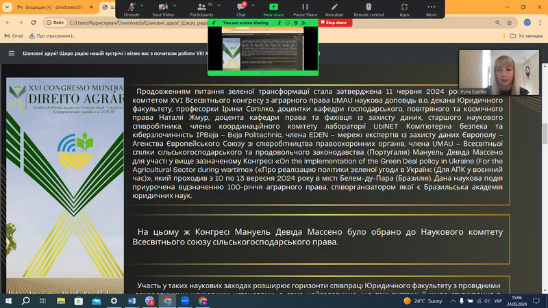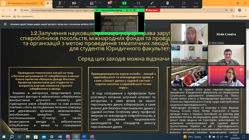 Тема виступу науковців стосувалась особливостей впровадження принципів відкритої науки в правничій школі Національного авіаційного університету (на прикладі міжнародного співробітництва із науковою спільнотою Португальської Республіки)”.