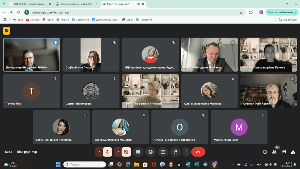 13 грудня 2024 року кафедрою кримінального права і процесу Юридичного факультету проведено науково-практичний семінар на тему «Актуальні питання вдосконалення правоохоронної діяльності в Україні».