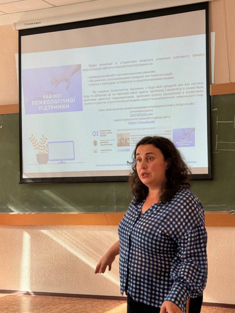 На завершення зустрічі Олена Шуляк окреслила переваги спілкування з психологом задля комфортної адаптації до навчального процесу, а також відповіла на запитання студентів та надала власні пропозиції щодо налагодження комунікації у студентському середовищі.