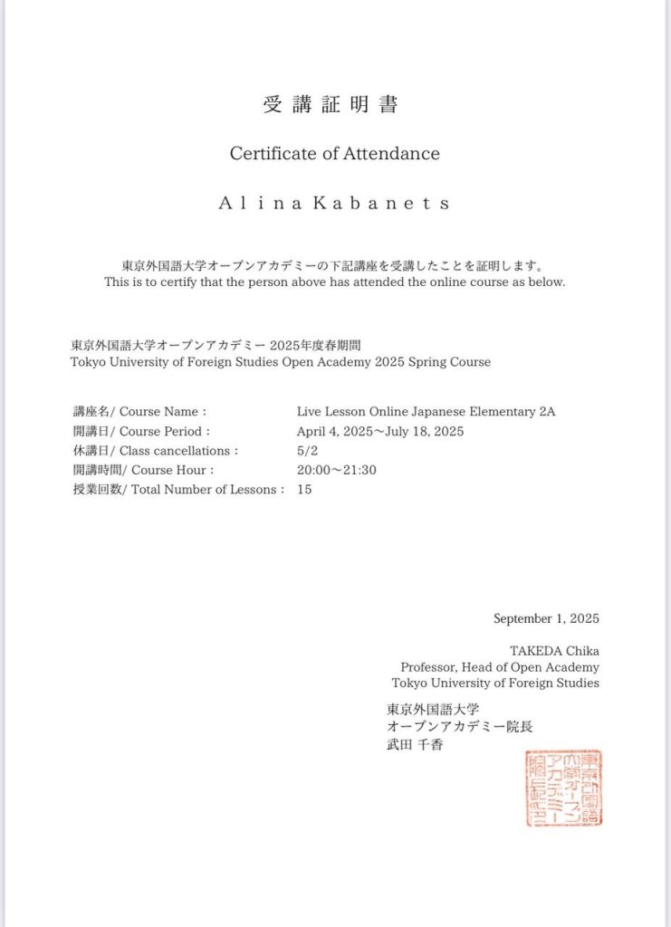 Студенти Факультету права та міжнародних відносин протягом чотирьох місяців (квітень-липень) були не просто студентами КАІ, а й слухачами Токійського університету іноземних мов. У рамках спеціальної програми підтримки українських студентів вони пройшли інтенсивний онлайн-курс з японської мови.