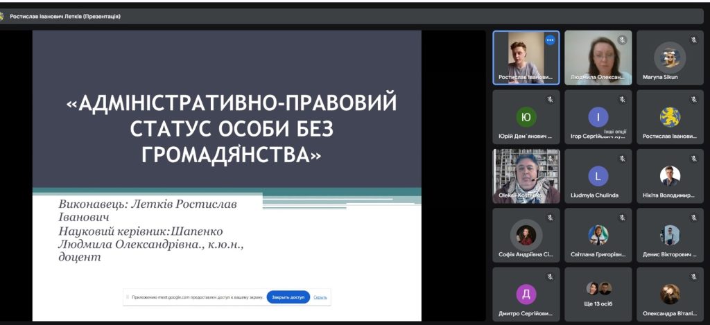 1 місце – Ростислав Летків (група Б-081-23-1-ПР. Тема роботи: «Адміністративно-правовий статус особи без громадянства», науковий керівник – Людмила Шапенко, завідувач кафедри, кандидат юридичних наук, доцент).