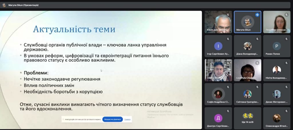 2 квітня 2025 року кафедрою конституційного та адміністративного права проведено І тур Всеукраїнського конкурсу студентських наукових робіт зі спеціальності «Адміністративне право і процес; фінансове право; інформаційне право».