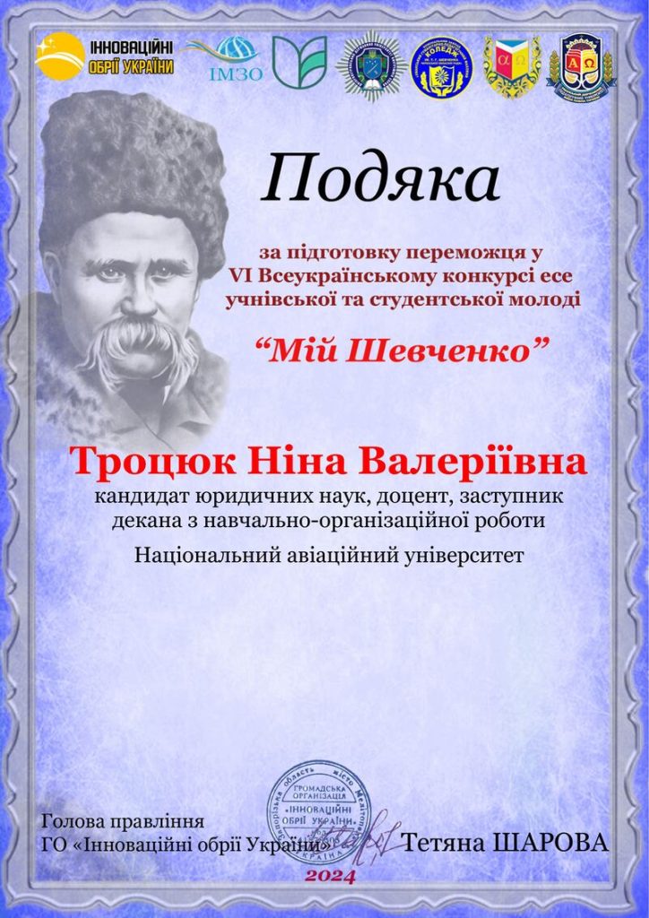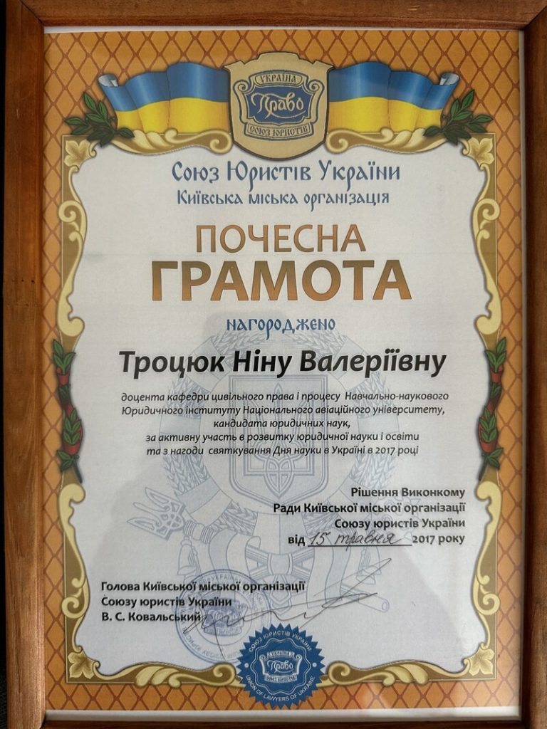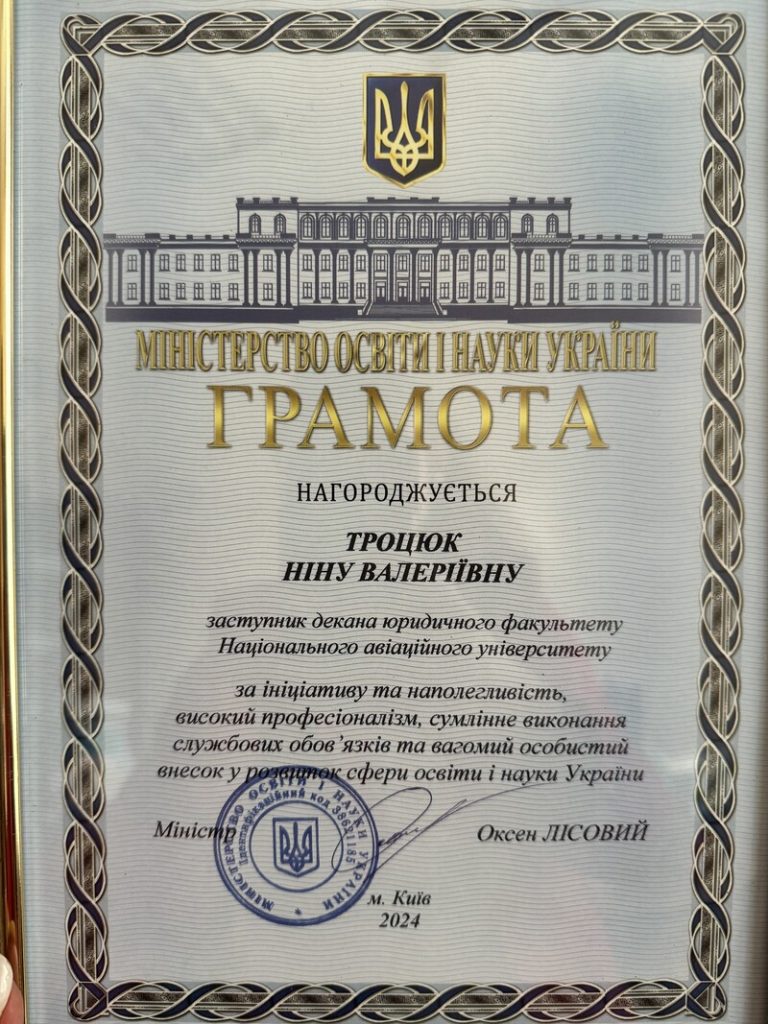 Рішенням Вченої ради Національного авіаційного університету від 22 червня 2022 року присвоєно вчене звання доцента.